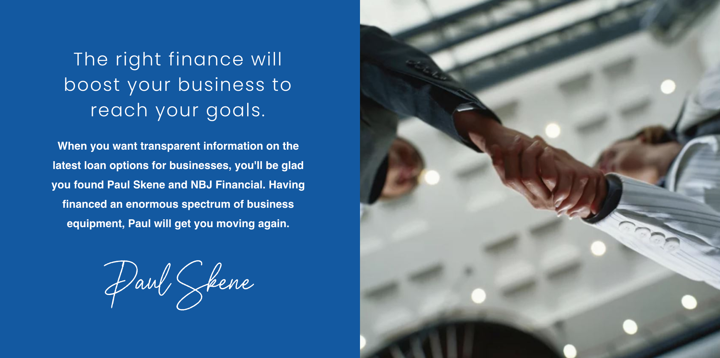 When you want transparent information on the latest loan options for businesses, you'll be glad you found Paul Skene and NBJ Financial. Having financed an enormous spectrum of business equipment.