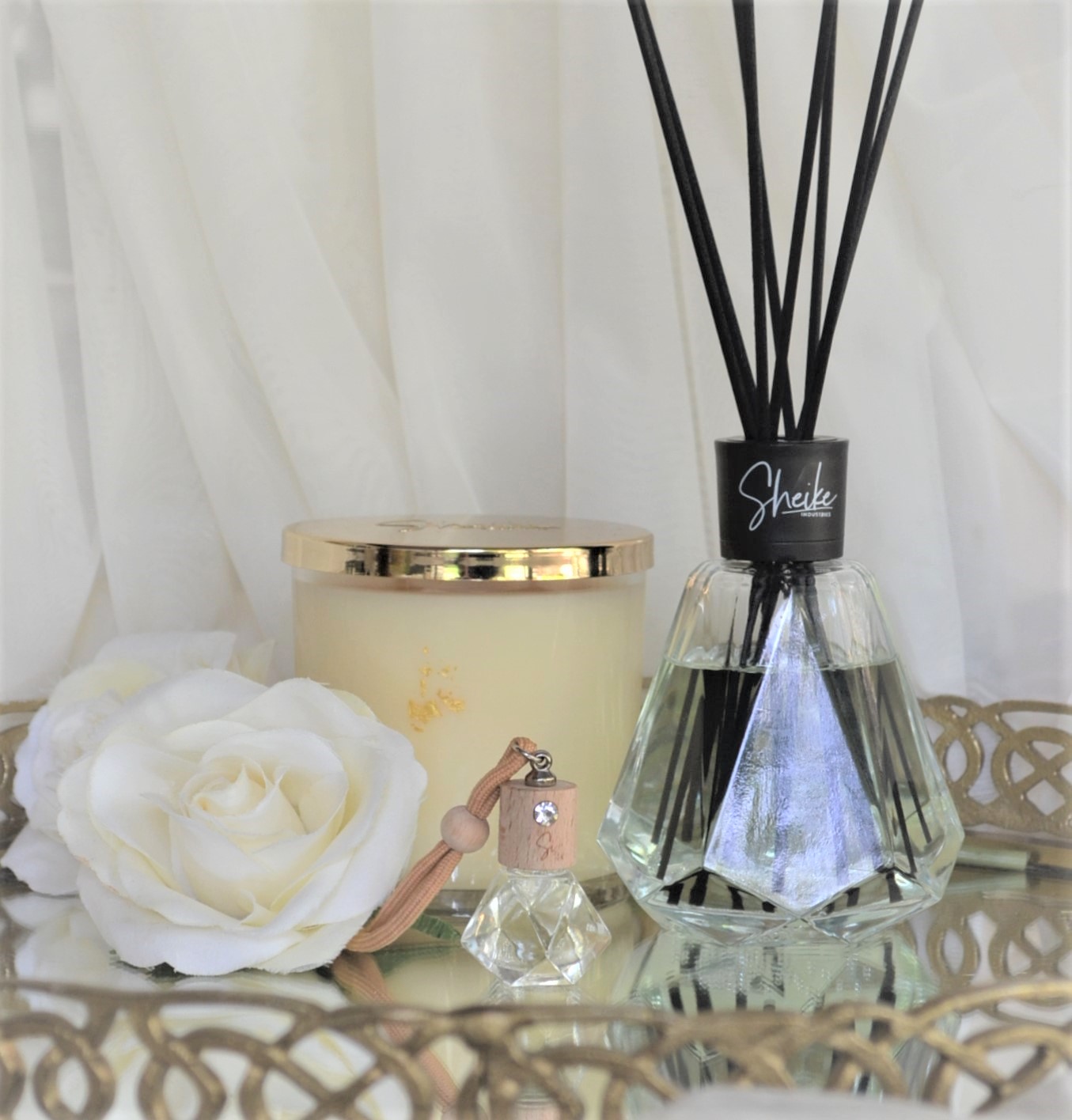 At Sheike Industries we handcraft a range of Elegant and Luxurious Soy Candles laced with 24K Gold as well as our signature Crystal Edition Diffusers for home or car which come beautifully packaged and encased in an exclusive Diamond bottle. These gorgeous diffusers are accentuated with A grade Cubic Zirconia's inside to add that sparkle and touch of glamour making this a statement piece not just an amazing, alluring scent.