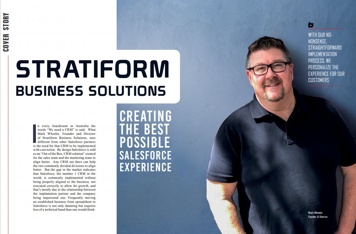 Stratiform’s strong partnerships and years of experience in salesforce CRM gives a unique perspective on how to best help their customers. Their straight forward rule of thumb: be honest with the customer, treat the customer with respect and work with likeminded companies. This has enabled Stratiform to become a valued Salesforce Partner and named 'APAC CIO Outlook Magazine Top 10 Salesforce consulting/Service companies 2018'.